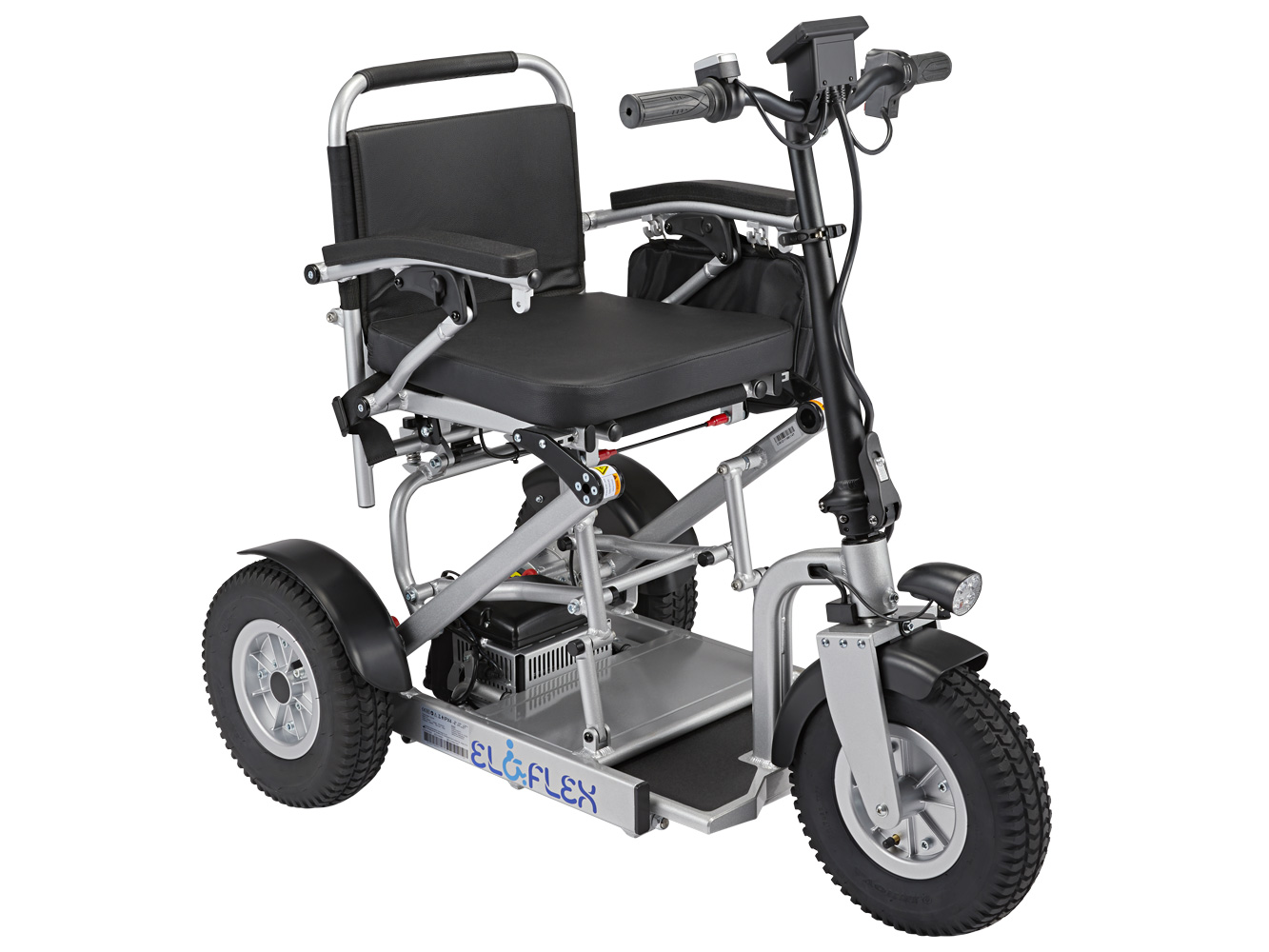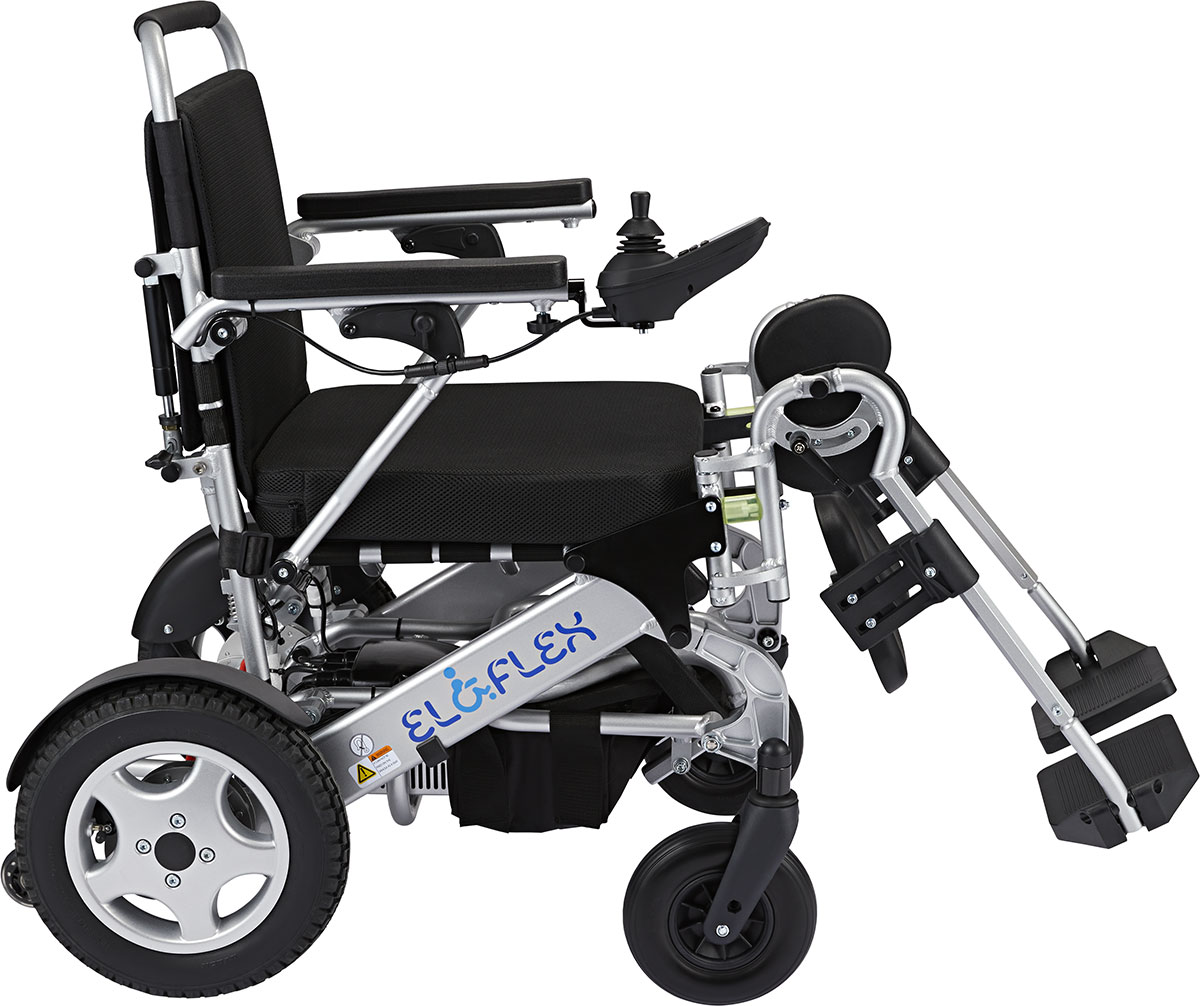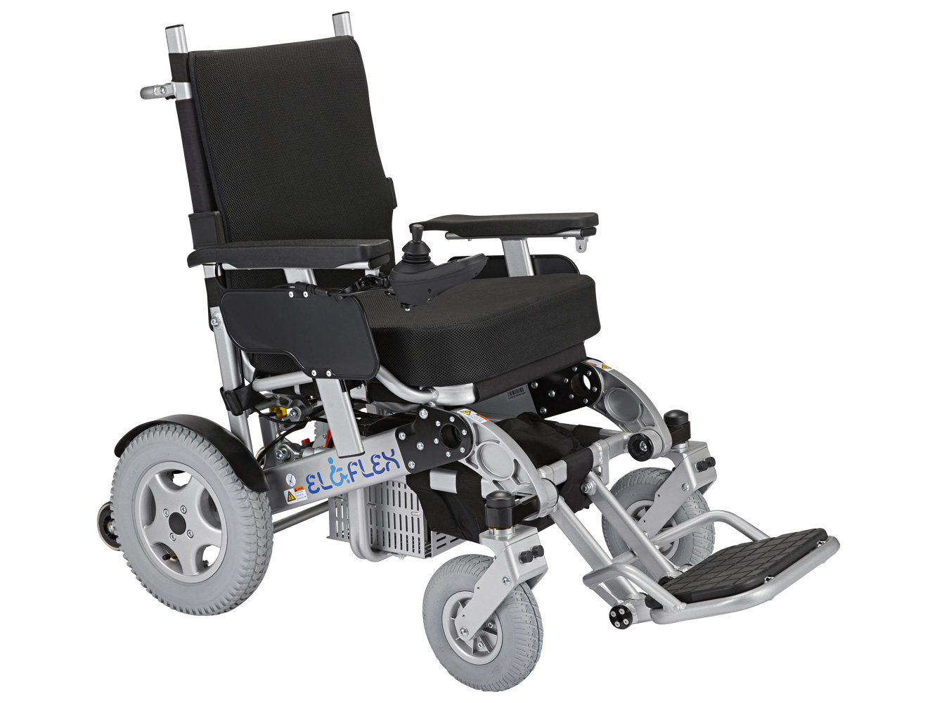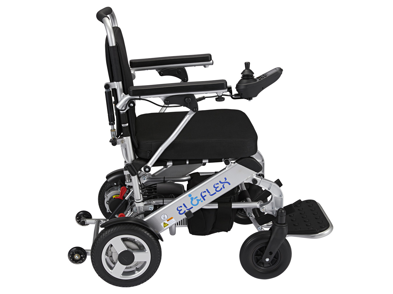 Eloflex L is a compact, no-nonsense power wheelchair for “no fuss” people on the move. It conveniently folds in seconds, making it easy to take with you when traveling by car or by plane.
