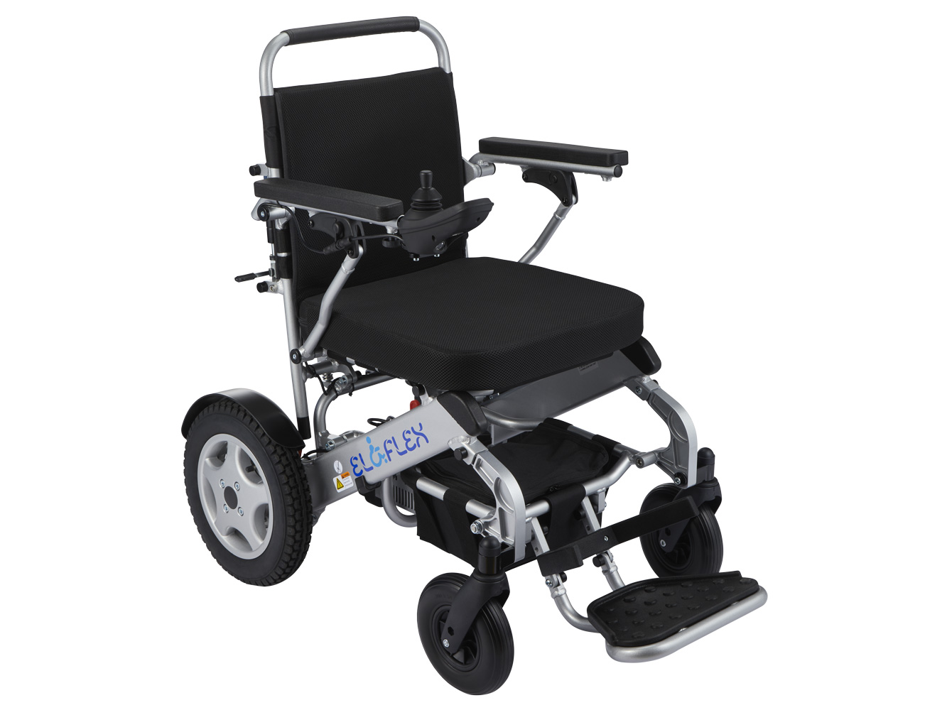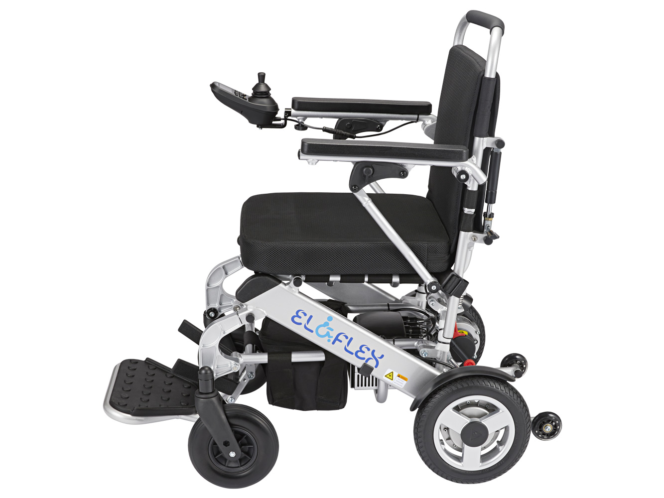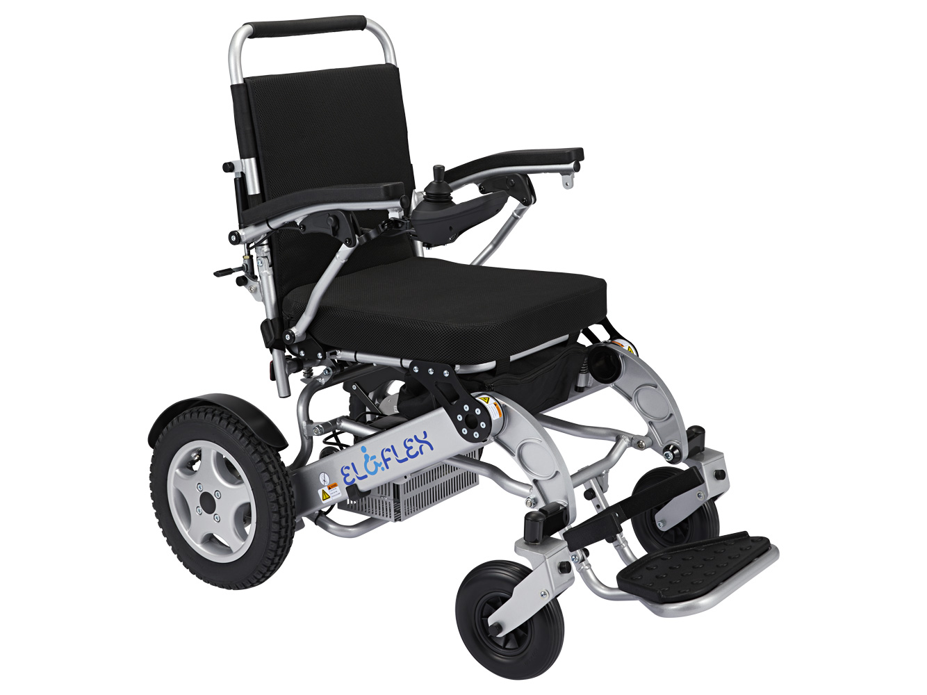 Eloflex L is a compact, no-nonsense power wheelchair for “no fuss” people on the move. It conveniently folds in seconds, making it easy to take with you when traveling by car or by plane.