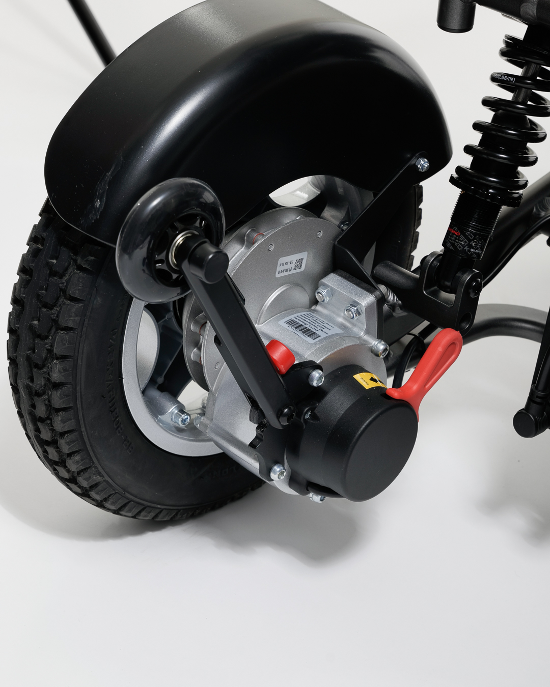 Eloflex model R is designed to provide superior comfort, accessibility, and performance. It offers a smooth and enjoyable ride, thanks to advanced suspension on both the front and rear wheels. With large rear wheels, it ensures excellent maneuverability on various surfaces, combining stability with comfort. Built to support up to 160 kg, it accommodates a wide range of users while maintaining optimal functionality.