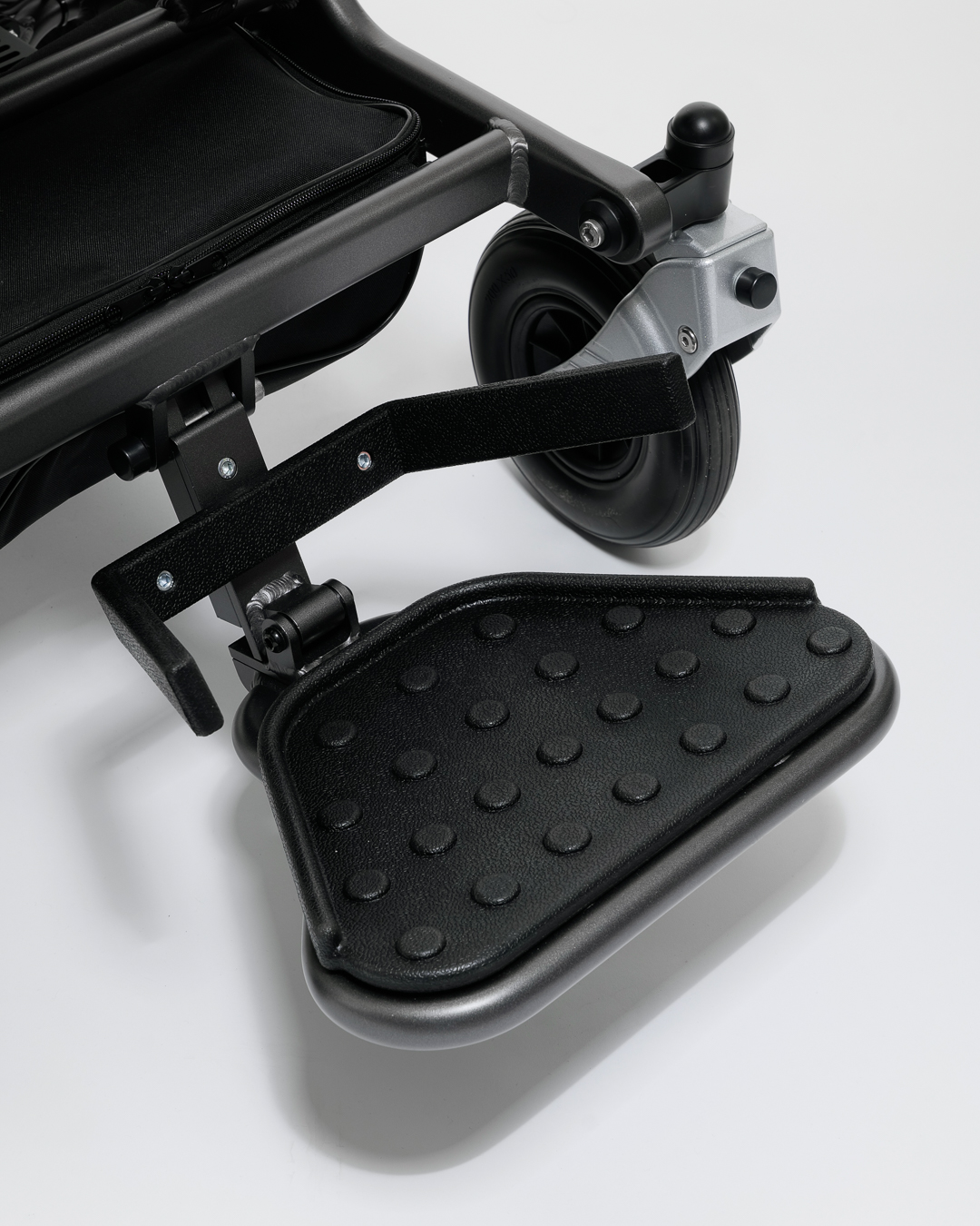 This model features a smart footrest that can be adjusted both vertically and horizontally, ensuring maximum comfort. Designed for convenience, the footrest easily folds out of the way, allowing effortless entry and exit from the chair.