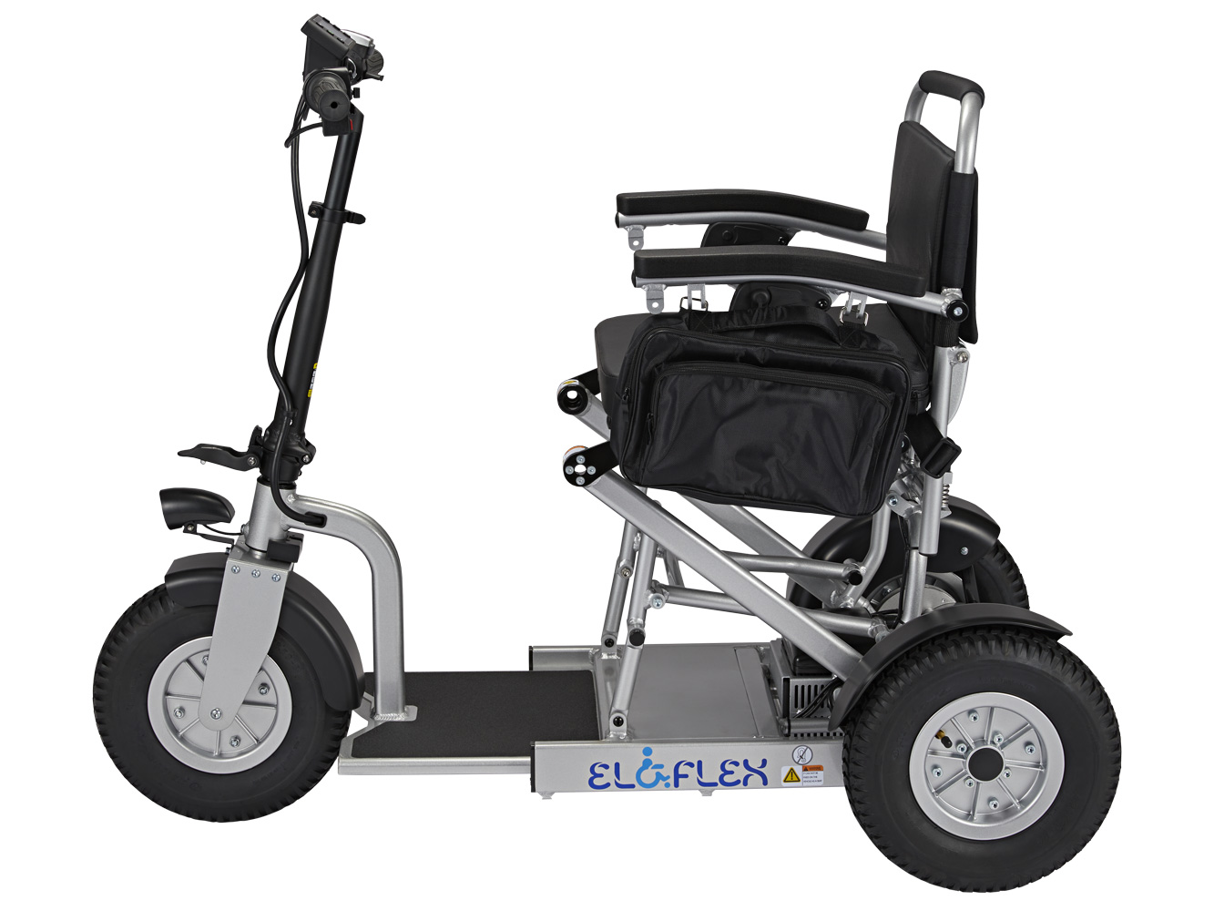 The seat of the Eloflex S1 is height-adjustable in three positions, enabling you to find the most comfortable sitting position. The adjustable length also allows you to determine how far away the handlebars extend. Inflated wheels dampen the impact and vibration from the ground as you ride.