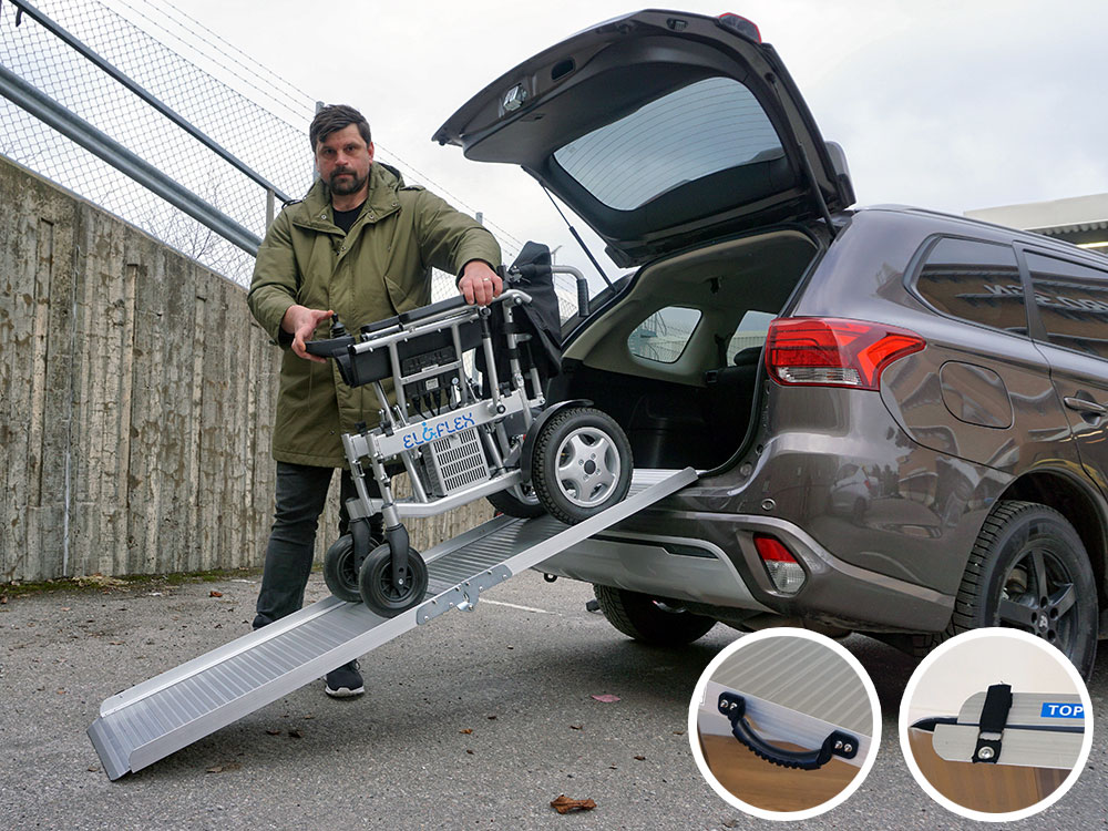 This model folds up easily in one smooth motion when you lift the seat. The backrest can also be folded, making the chair easier to load into a standard car. Our foldable Model X also takes up minimal storage space when not in use.